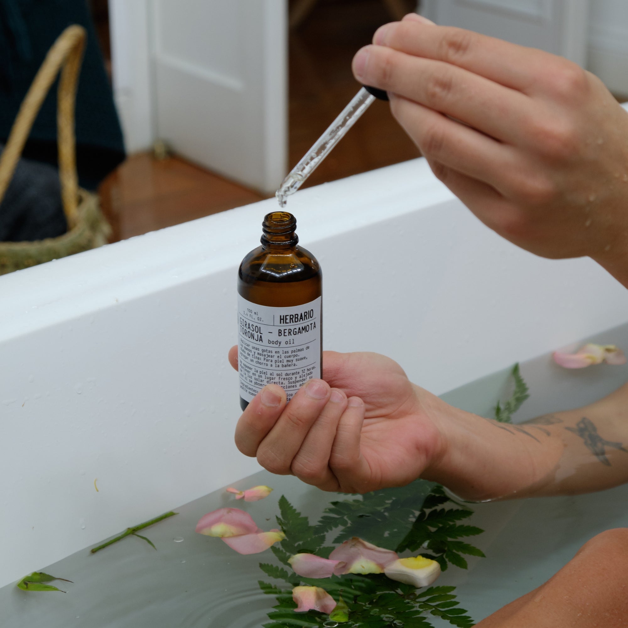- Aceite vegetal de girasol, aceite esencial de bergamota y aceite esencial de toronja.