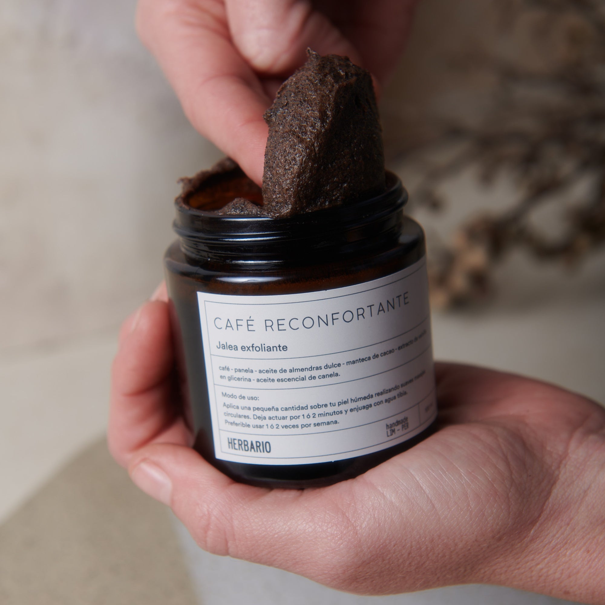 Exfolia, desintoxica, repone y relájate con este delicioso exfoliante para una piel suave y renovada hecho cuidadosamente con aceite de almendra y manteca de cacao que nutren la piel; azúcar de panela y café arábico que contienen micropartículas que ayudan a eliminar las células muertas que combinadas con aceites esenciales de vainilla y canela crean un efecto drenante, tonificando la piel y combatiendo la celulitis para obtener una experiencia corporal vigorizante y energizante.