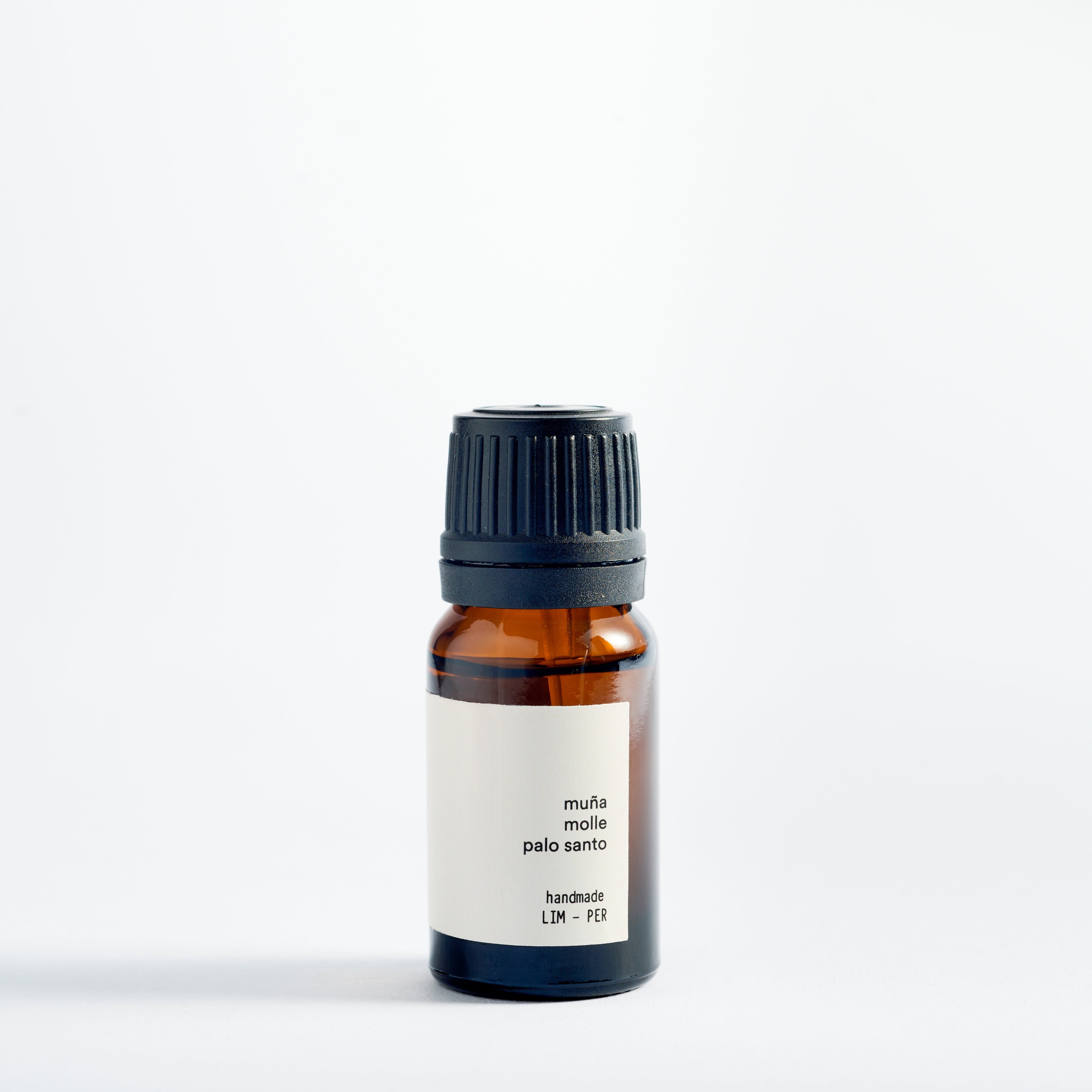 - Aceite esencial de muña, aceite esencial de molle y aceite esencial de palo santo.