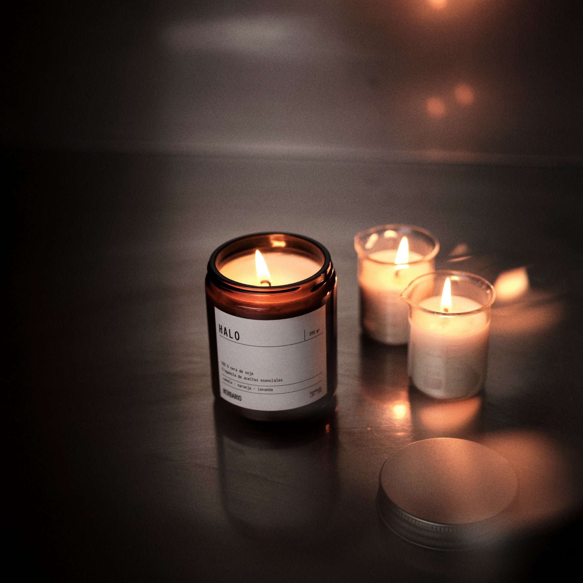 Vela Halo - canela, naranja y lavanda